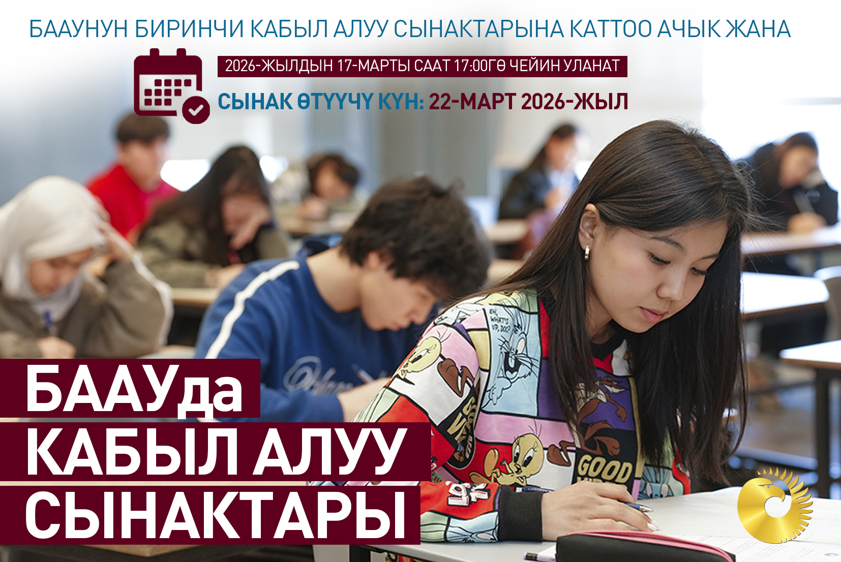 БААУнун кабыл алуу сынактарына каттоо ачылган жана ал 2026-жылдын 17-марты саат 17:00гө чейин уланат.