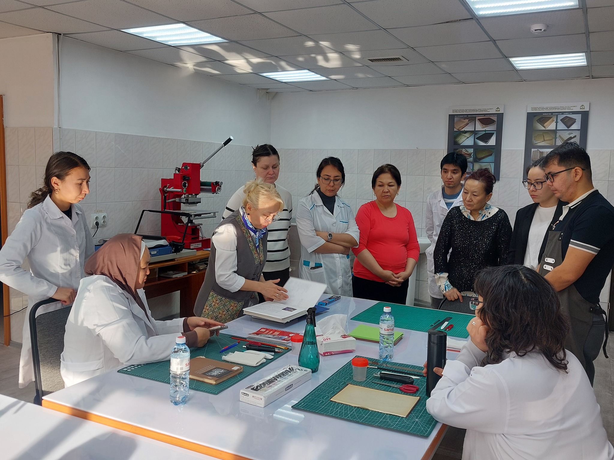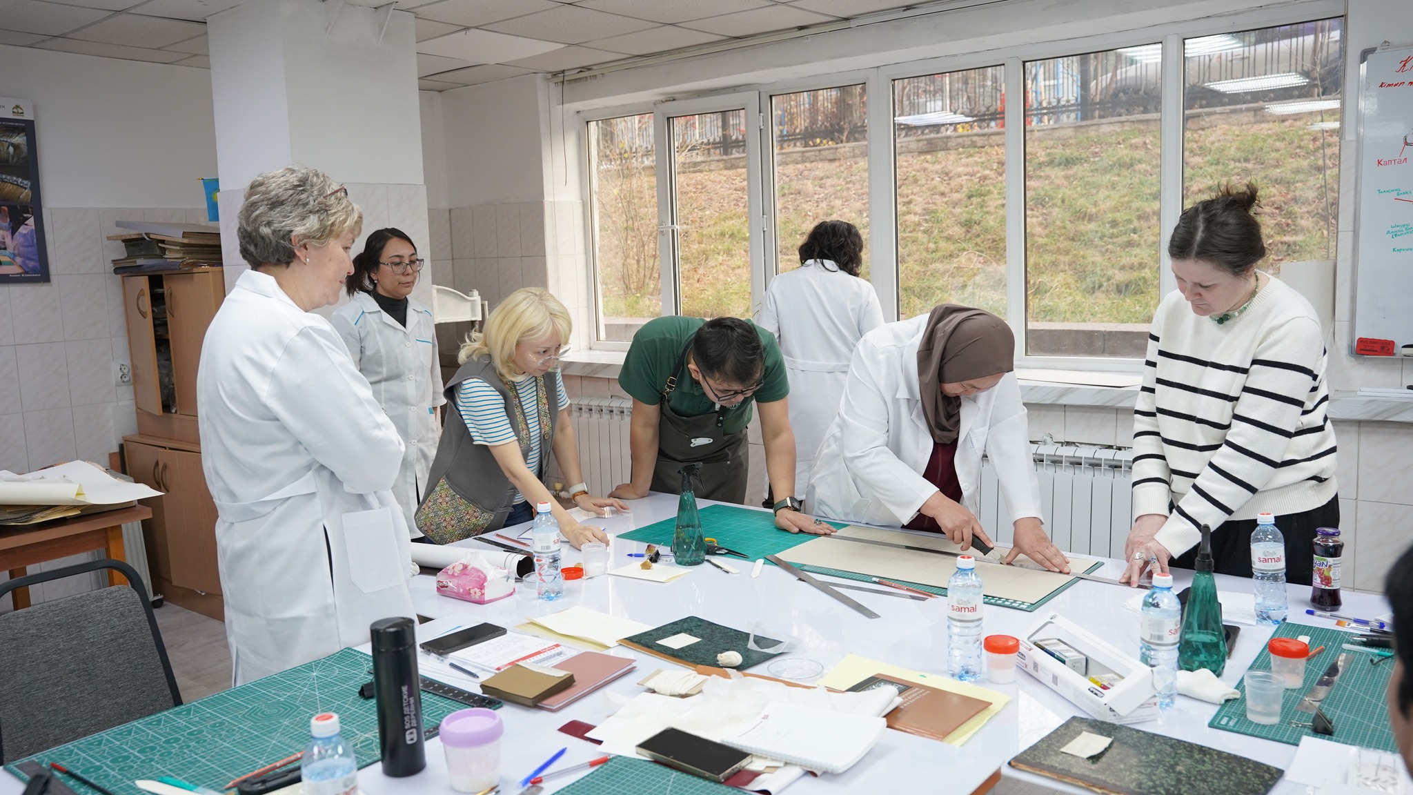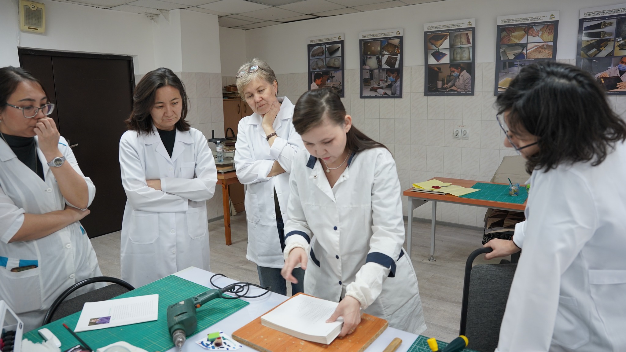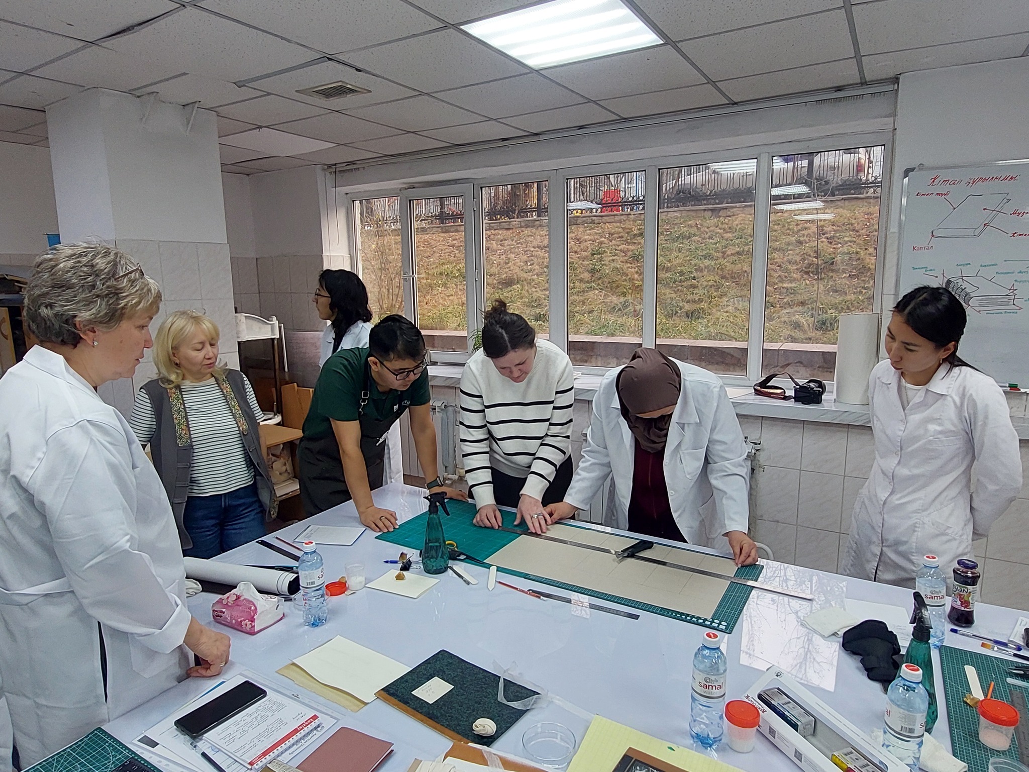 Теоретическое и практическое обучение проводили сотрудники Службы реставрации, консервации и переплета Национальной библиотеки Казахстана под руководством Аиды Муратовны Шомановой.