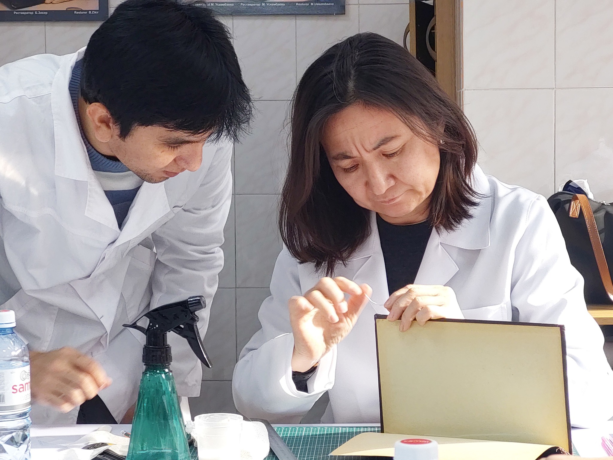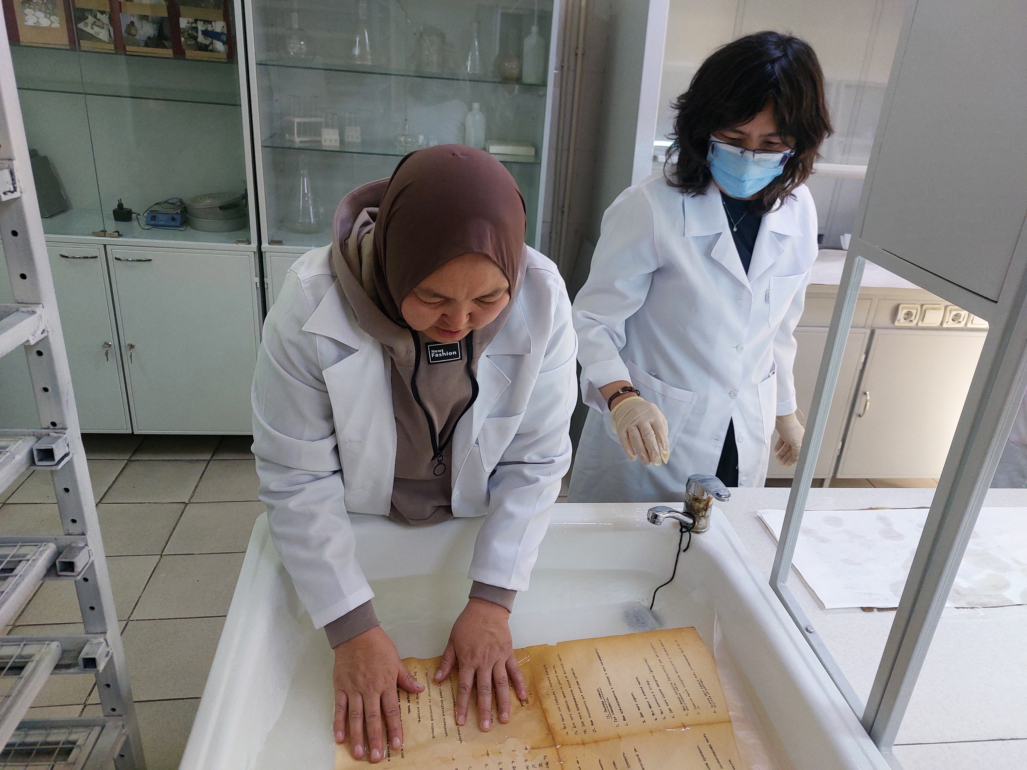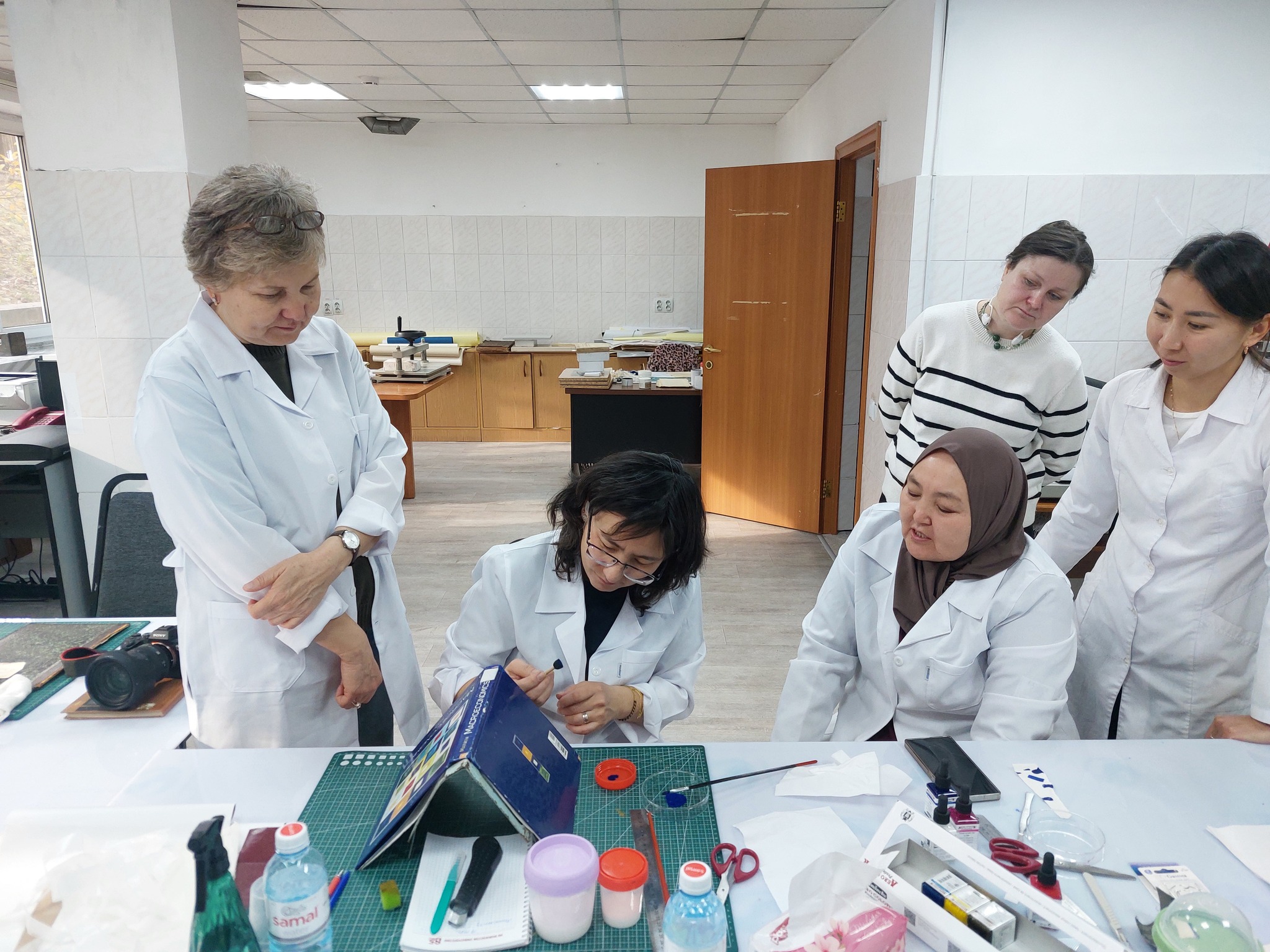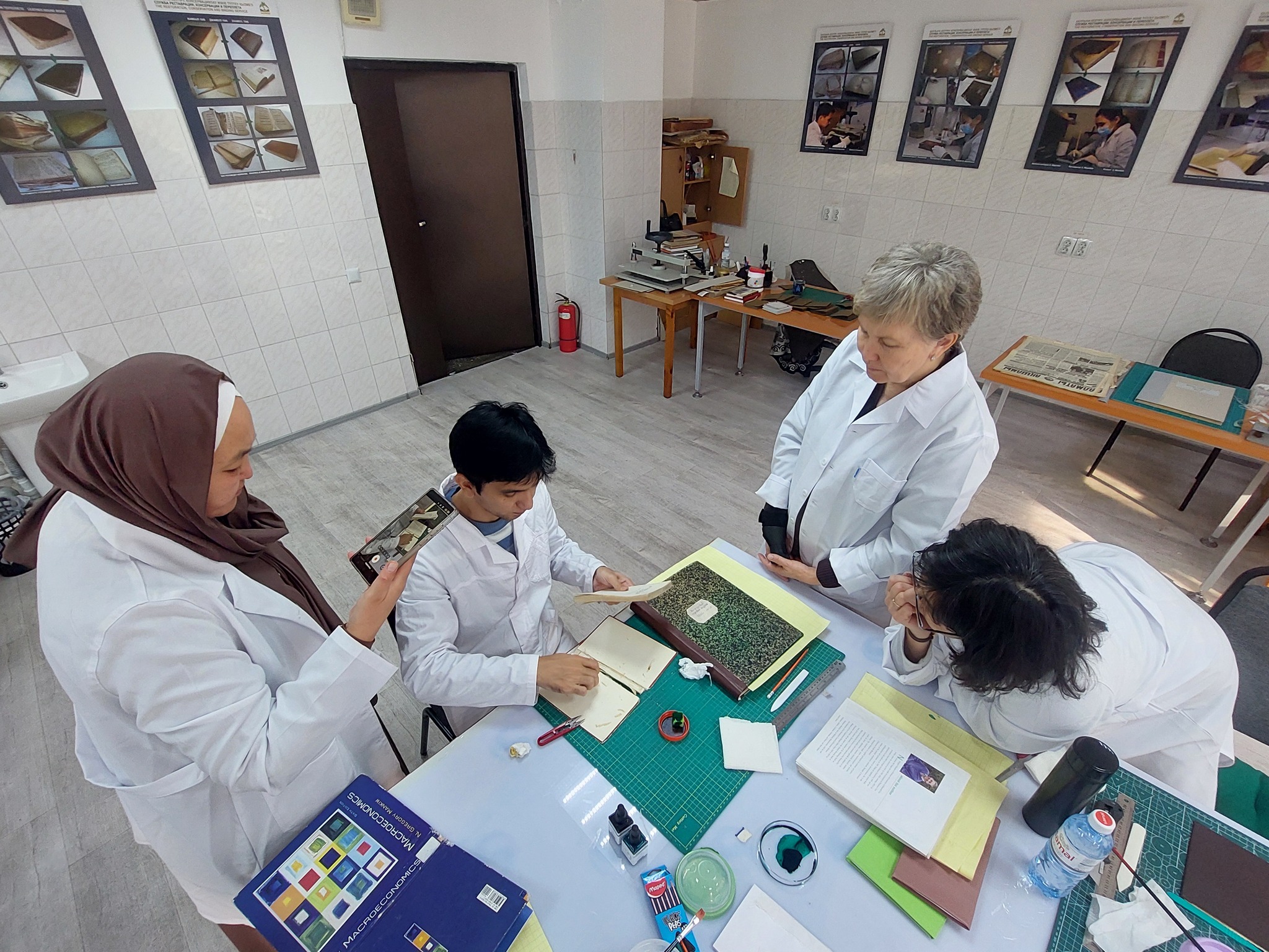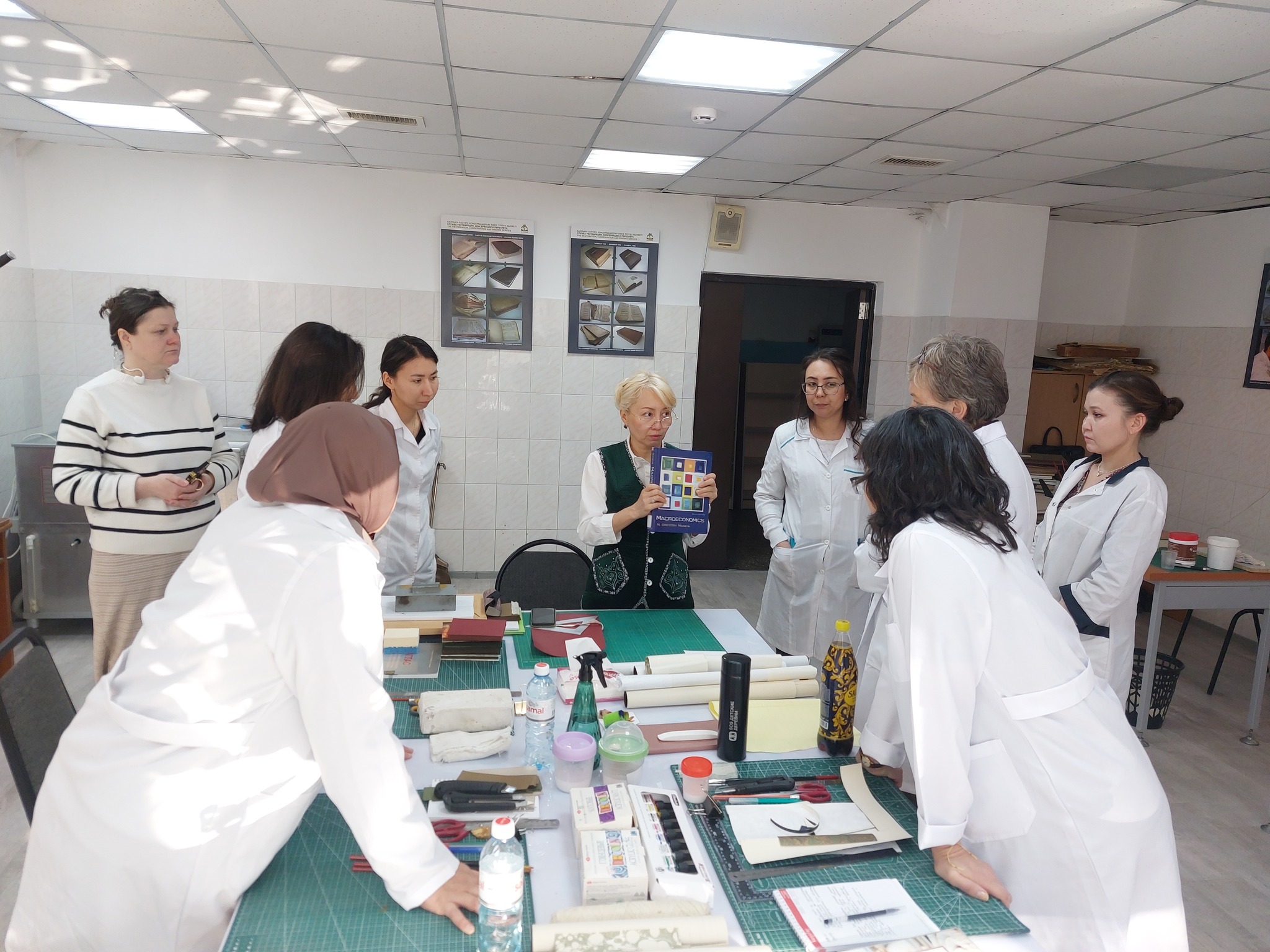 Теоретическое и практическое обучение проводили сотрудники Службы реставрации, консервации и переплета Национальной библиотеки Казахстана под руководством Аиды Муратовны Шомановой.