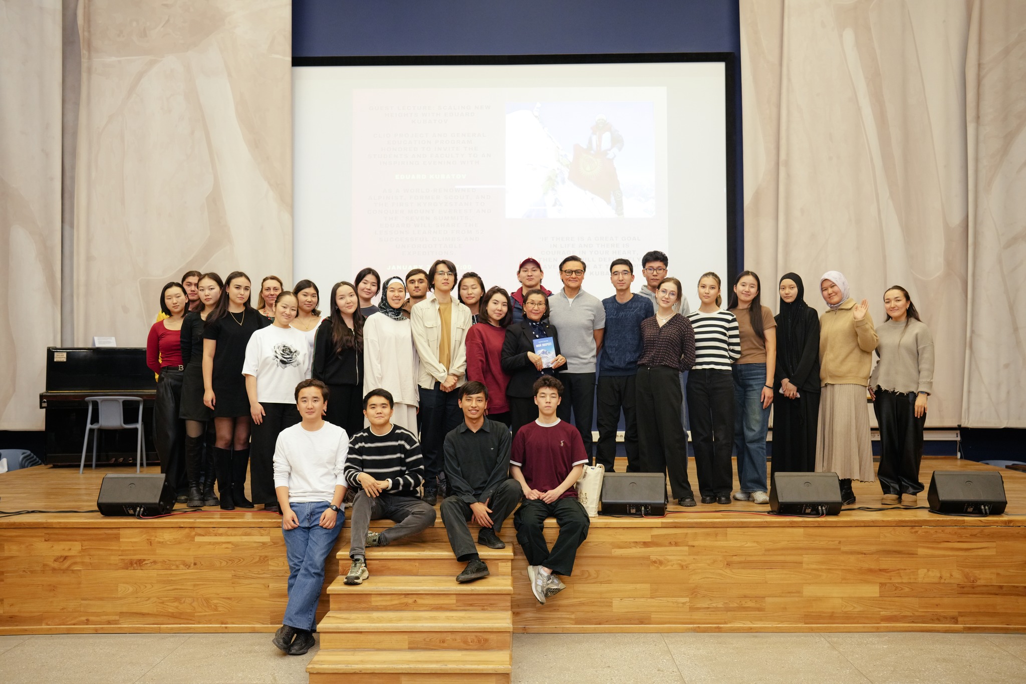 27 января 2026 года в АУЦА прошла гостевая лекция первого кыргызстанца покорившего Эверест, высочайшую вершину мира, Эдуарда Кубатова.